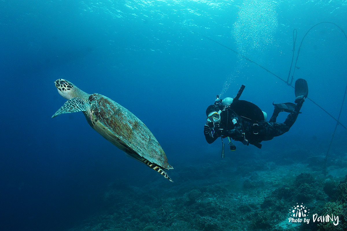 매부리코 거북이와 수중사진