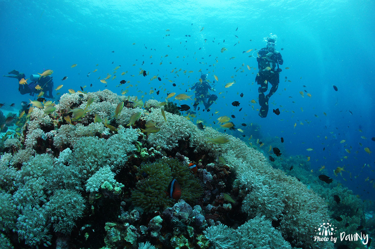 얕은 수심, 산호 군락근처에서~